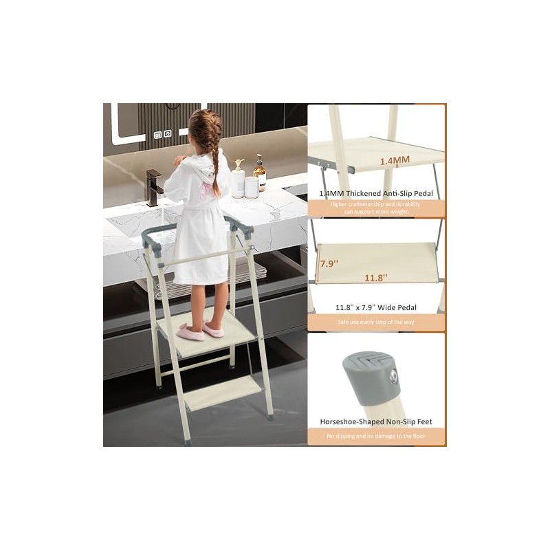• Perfect gift: The ladder makes it easy and safe to climb, to explore easily by themselves. Enable your little one to establish the habit of washing hands and brushing teeth, become more independence.