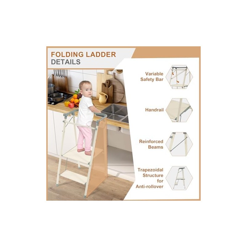 • Multifunctional: Foldable step stool is not only designed as a kitchen stool, but also can be used as a bathroom sink stool, counter helper stool. The stair with handrails provides enough security for your little ones while learning to be independent, will accompany in the process of growing up. Meet your different needs. The expansion dimension is 19.9"L x 18.4"W x 34.5"H.