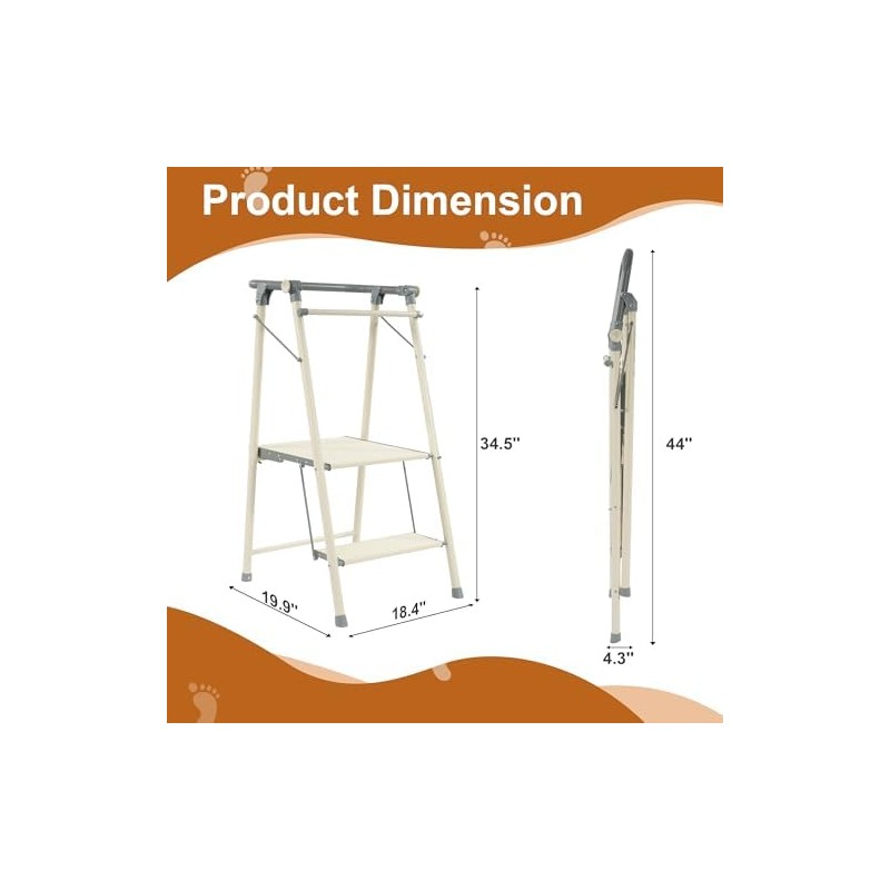 • Portable and foldable, easy to clean: Step stool crafted by high-strength lightweight steel and aluminum frame, provide both sturdy and reliable, for good support and high security. The ladder is designed to fold up easily and perfect for storage. It looks nice and compact when folded up, and easy to carry. When it's time to clean, simply wipe it down, and it will be back to its pristine state.