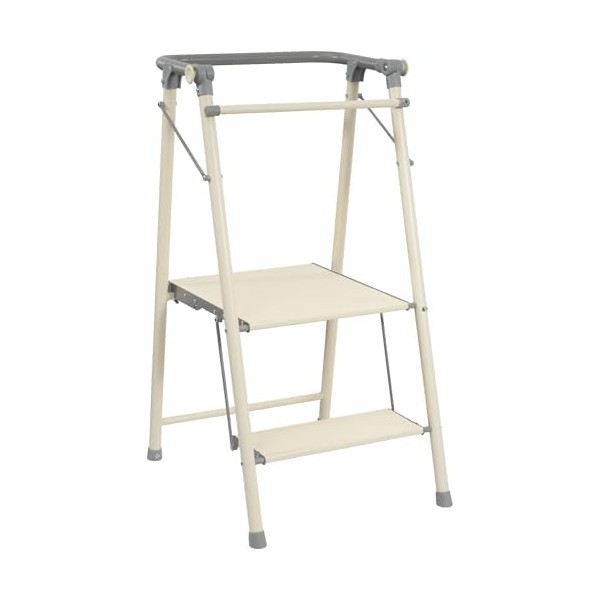 Elevon Step Stool, Metal Two Step Ladder Step Stool with Wide Pedal for Kitchen Counter Bathroom Sink, Grayish White