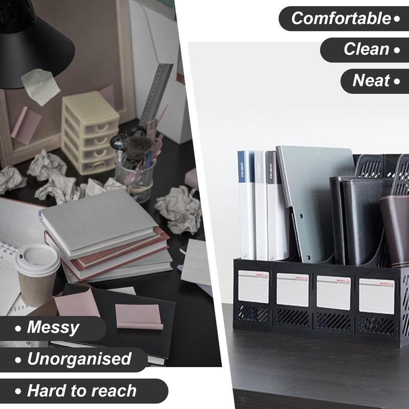 In addition to its storage capabilities, the Elezeal A4 Magazine File Holder serves as a practical desk organizer. It helps declutter your workspace by keeping your papers, magazines, and files neatly arranged, minimizing distractions and promoting productivity.