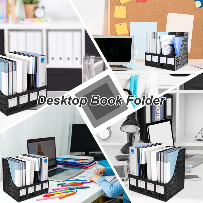 Elezeal A4 Magazine File Holder 4 Vertical Compartments Bookshelf Document Folder File Divider Desk Organizer Paper Box for Office Home Organization and Storage Black