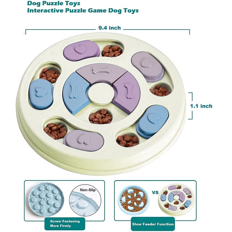- 【INCREASE FUN & IMPROVE IQ】 -This Dog Puzzle Feeder Toy is full of fun. It not only needs the puppy to smell the food but also moves the puzzle to get the food. Train the dog's intelligence and strength,not lazy.