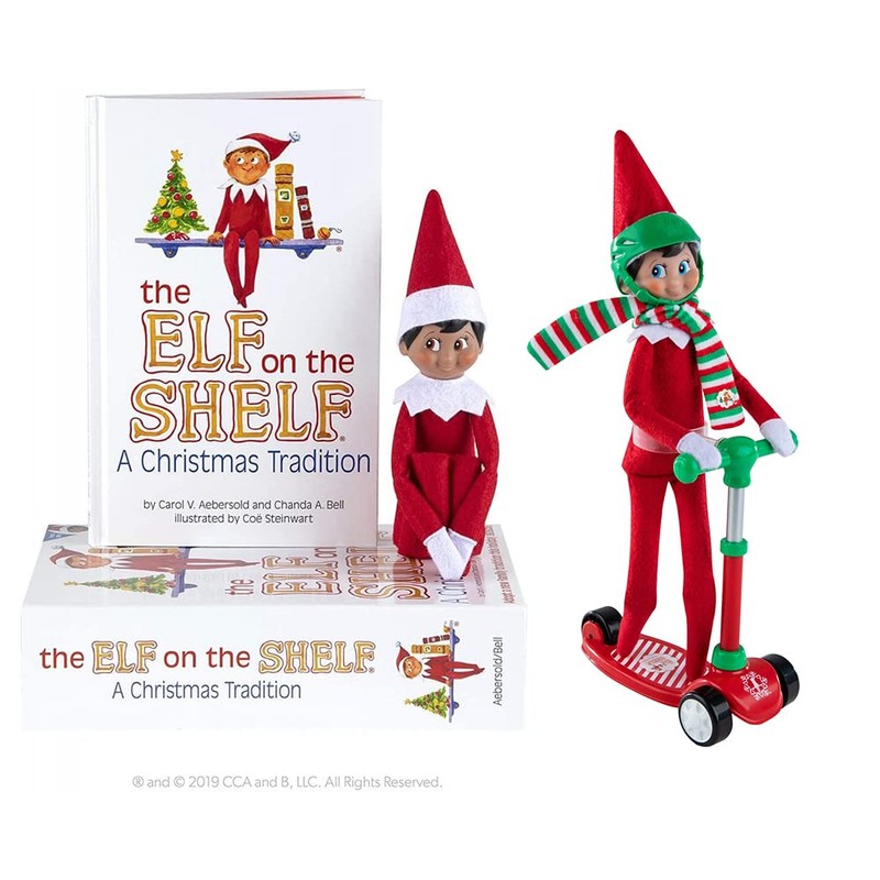 - PRODUCT SPECIFICATIONS: One Scout Elf, Plastic scooter with moving wheels, Elf-sized safety helmet, Festive striped scarf.