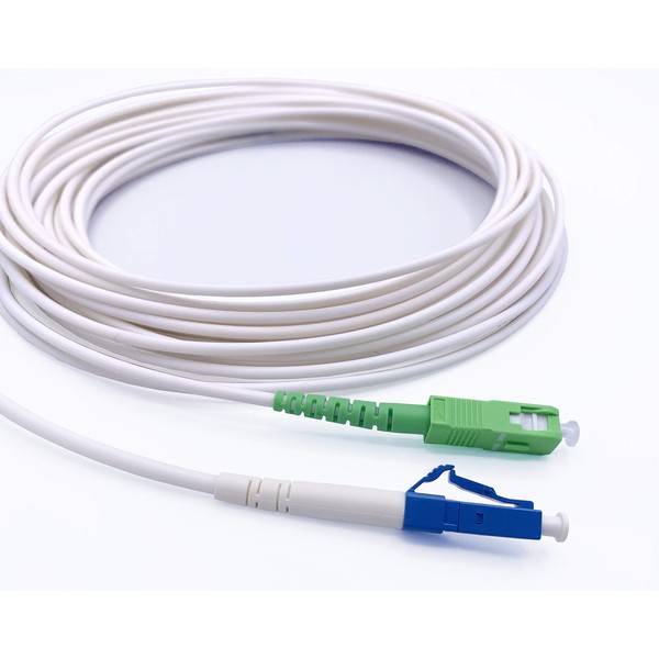 Elfcam - 7m Fibre Optic Cable SC/APC to LC/UPC Single Mode Simplex, LSZH Optical Cable White,7 Meter