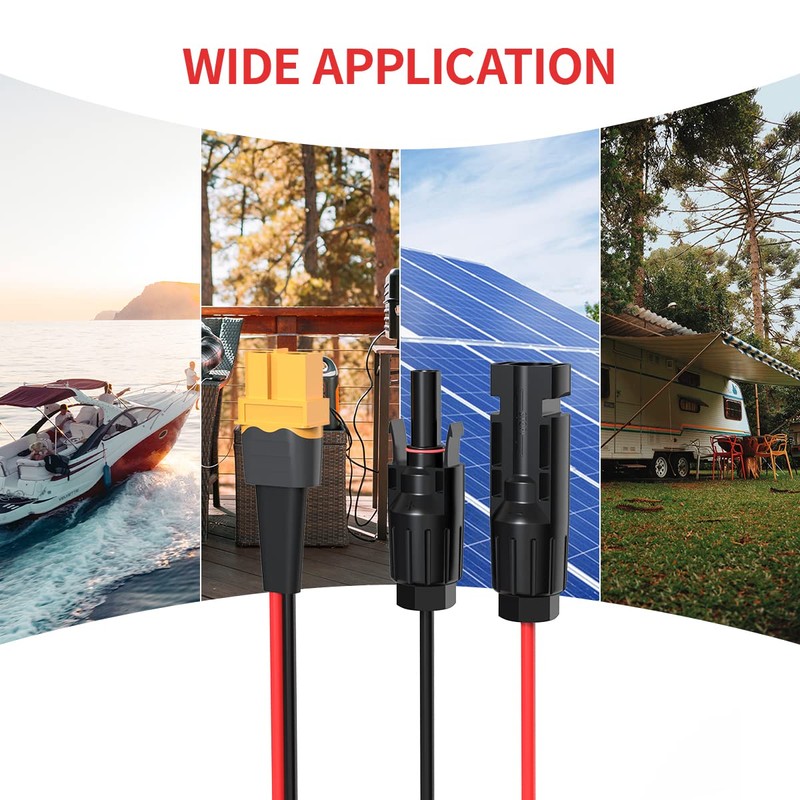 - [Easy to Use] XT60 and solar connectors fit most solar panels and battery packs,solar panels and power stations can be easily connected.Rated Voltage 600V. Cable Length: 2FT.