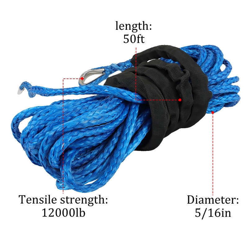 - Detailed Size: Diameter: 5/16 in, Length: 50 ft, tensile strength: 12000lbs, color: blue.