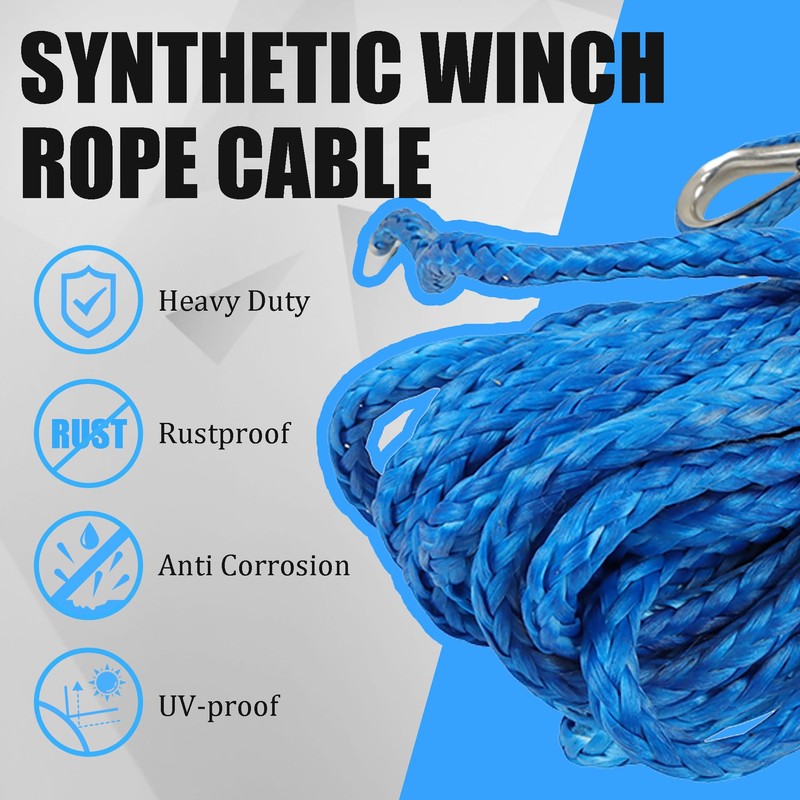 elfinrm 5/16 in x 50 FT Synthetic Winch Rope, 12000LBS Synthetic Winch Rope, Winch Line for ATV UTV SUV (Blue)