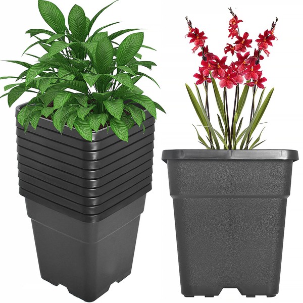 elfinrm Square Planter Nursery Pots 1.36 Gallon Pots for Plants, Injection Molded Plastic Nursery Pots, Plant Container 1.36 Gal 10-Pack