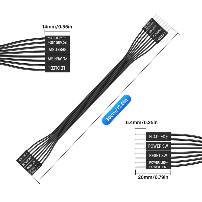 - Each set contains two complete cable sets (POWER SW, RESET SW, HDD LED±, POWER LED±) to meet backup or dual system requirements.