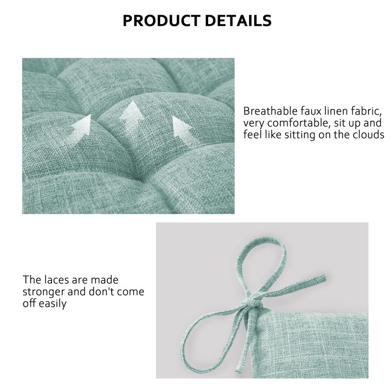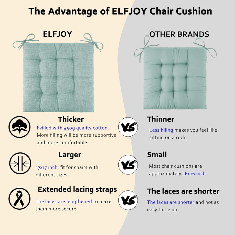 - Design - Adequate filling makes it thick,plump and comfortable. 2 straps on one side of the cushion secure it to the chair.