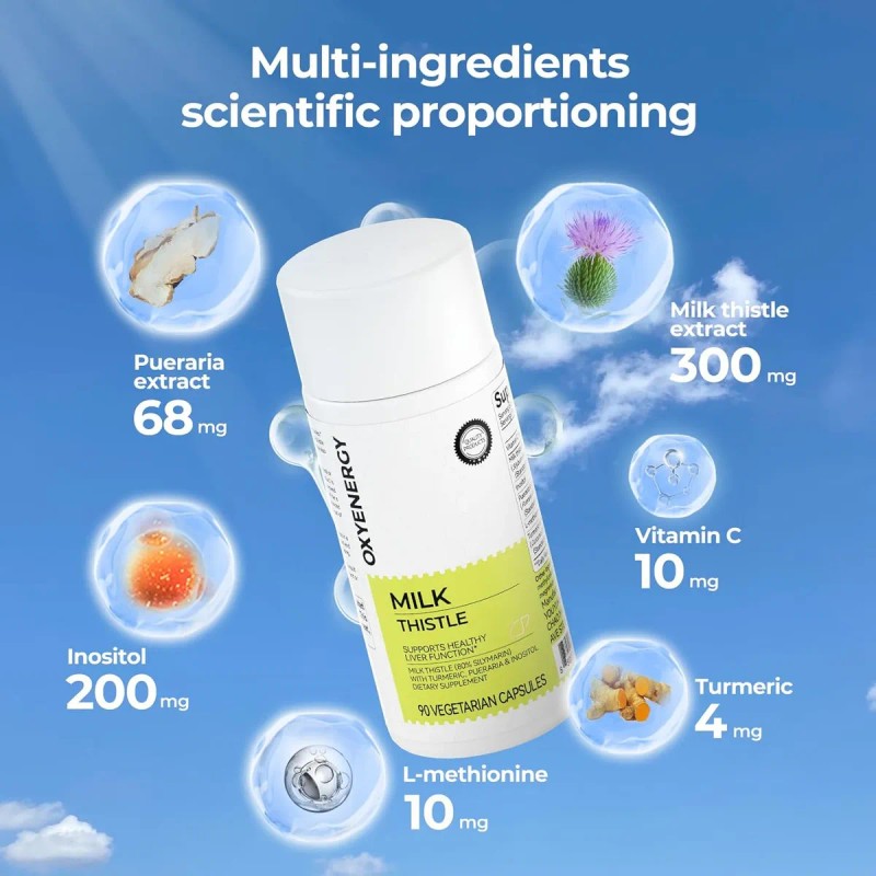 Elfleaf Oxyenergy Silymarin Milk Thistle 300mg Extracto Con Vitamina C, Inositol Y Pueraria, Apoyo A La Desintoxicación Y Reparación Del Hígado, Apoyo A Los Antioxidantes, 90 Cápsulas