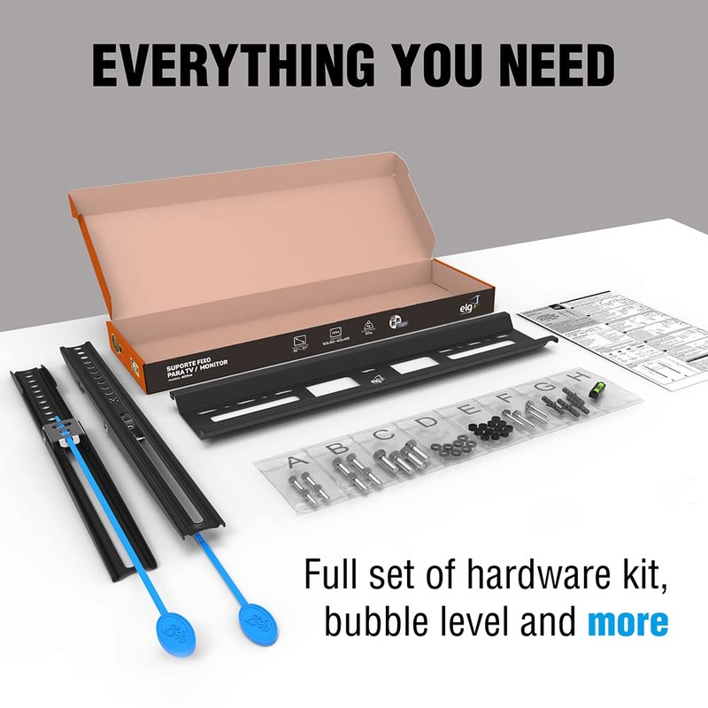 - QUICK & SIMPLE INSTALLATION: With a clear instruction guide and a complete hardware kit, will help you get your TV on the wall perfectly for the first time. This product includes a full set of factory assembled components packed individually into bags for extra protection and a complete pack for installation (all necessary screws, washers, spacers, and a bubble level).