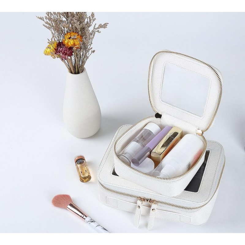 - Premium Material: Made from high-grade PU leather, both interior and exterior, this clear cosmetic bag is scratch-resistant, water-resistant, and easy to clean. The elegant light gold metal hardware accents add a luxurious touch to its design.