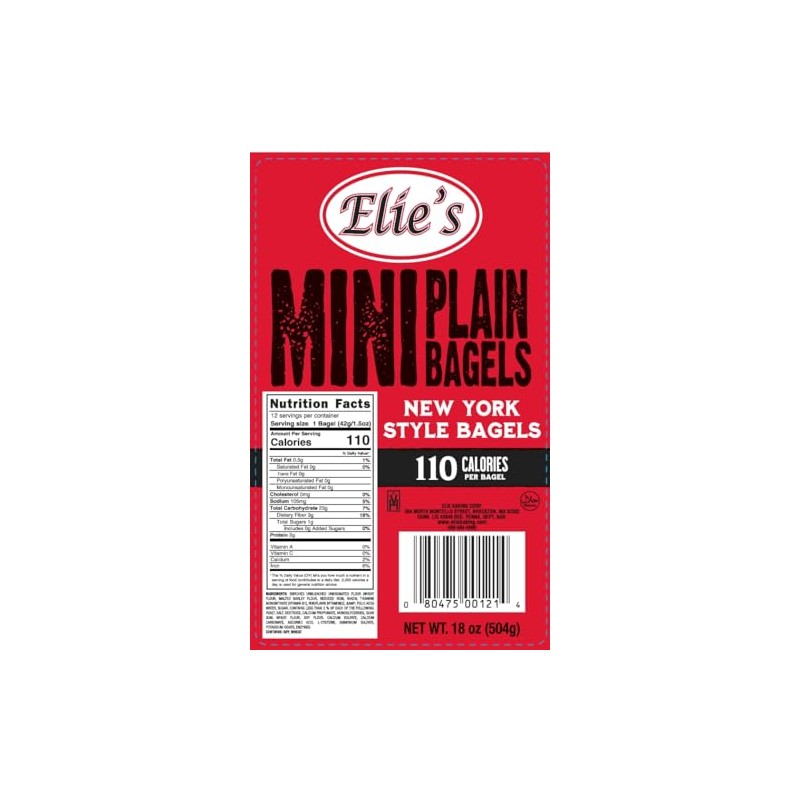 Elie's Mini Bagels - 6 packs of 12 Mini Plain Bagels = 72 total Mini