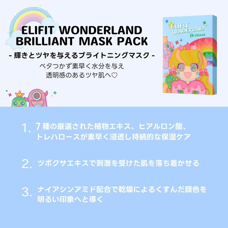 ELIFIT WONDERLAND Brilliant Fes Pack of 10 Clear and Tone Up Face Mask Whitening Natural Ingredients Safe for Sensitive Skin