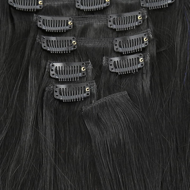 - Clip In Hair Extensions Material: select high quality 100% virgin human hair,all hair cuticle keep intact and same direction is a key factor to avoid tangle and last for long time.