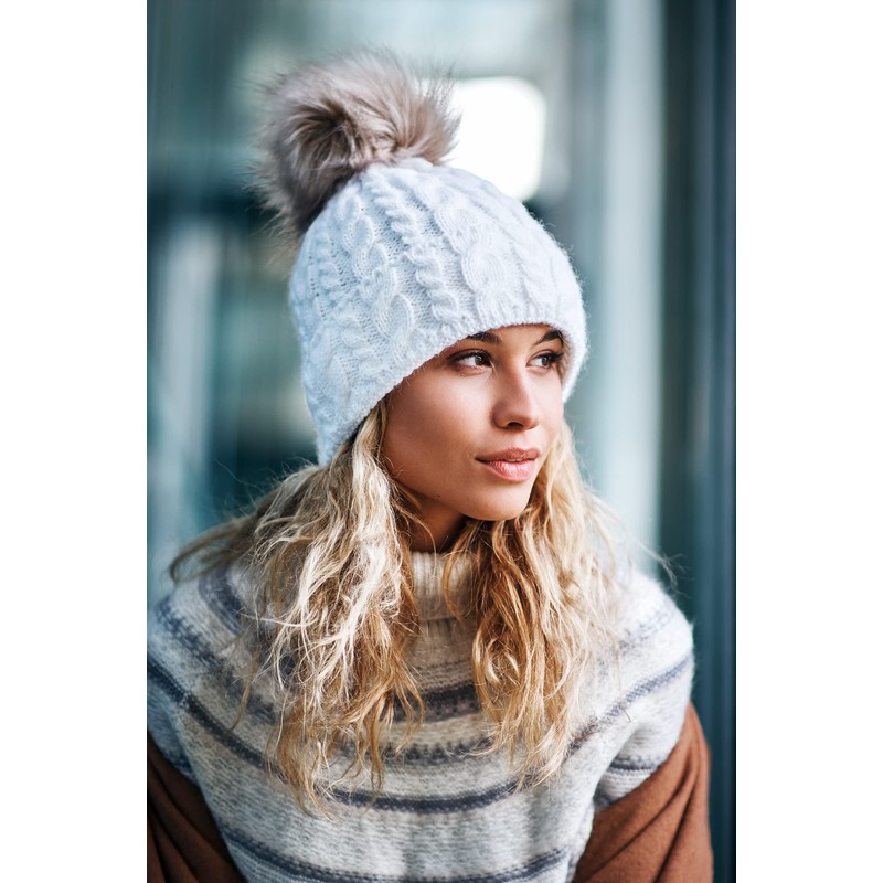 - Design: A beanie hat with beautiful, decorative braiding. Thanks to its universal style, the bobble hat is an excellent addition to a variety of outfits, both everyday and sporty. The bobble is made from the highest quality faux fur and looks like real fur. The logo is removable.