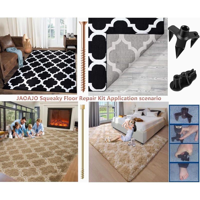 - The JAOAJO Floor fixing screw repair kit is specifically designed to prevent loose floors from creaking.Screws hold the floor to the keel, then effectively eliminate the squeaking between the floor and the keel, and provide you with a quiet environment, if you are annoyed with the floor, this floor fixing screw kit will be your effective solution.