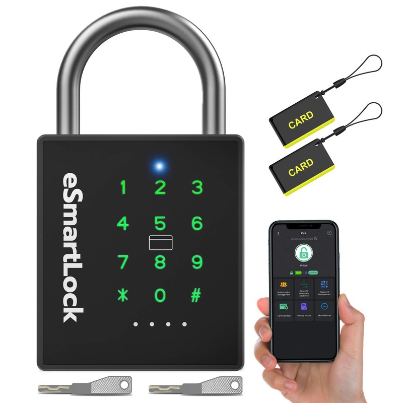 - đă5 WAYS TO UNLOCKă: The P12 smart padlock has 5 unlocking ways, RFID card unlock, passcode unlock, Apple Watch unlock, Mobile App unlock and controlled through Bluetooth, and backup mechanical key unlock. A perfect smart lock to help you achieve Intelligent and Convenient Life.