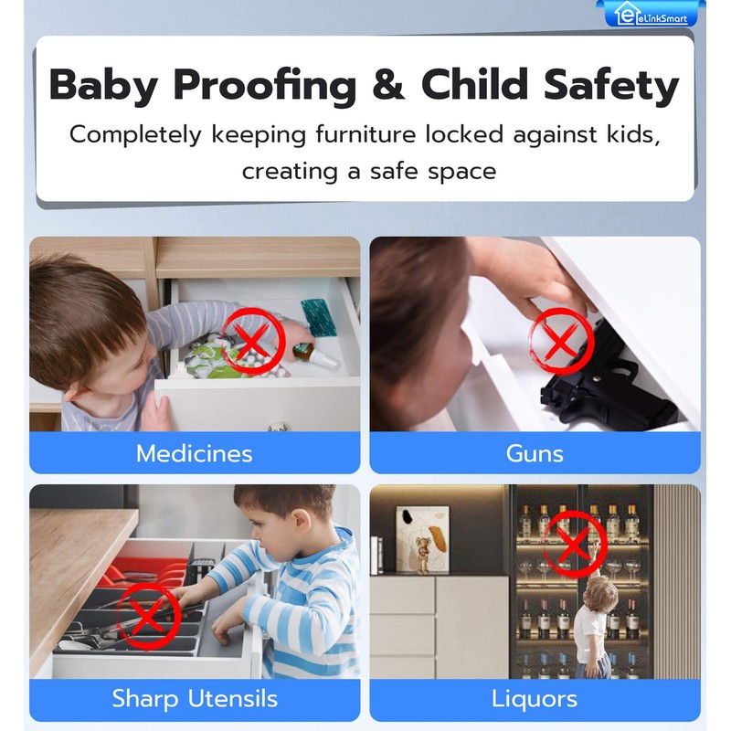 eLinkSmart Smart Cabinet Lock, Keyless Electronic Digital RFID Bluetooth Hidden No Drill Magnetic Child Safety Baby Proofing Drawer Lock for Cupboard Closet Liquor Adults Secret File Cabinets - Pink