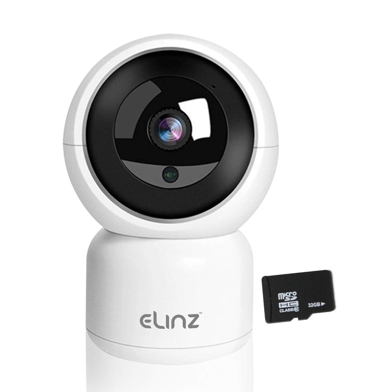 Elinz Security Camera WiFi IP Smart Auto Tracking HD Wireless Pan Tilt 2 Way Talk Night Vision Cloud Storage Motion Detection Remote Viewing Camera Sharing CCTV 1080P 32GB White