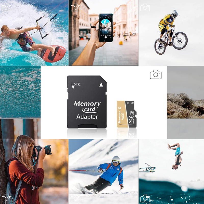 Elisubabau Micro Memory Card, High Speed Performance, Class 10 Standard, UHD Compatible, 4K Video, Compatible with Cameras, Smartphones, etc., Low and High Temperature Resistant, Conversion Adapter Included, E (256GB)