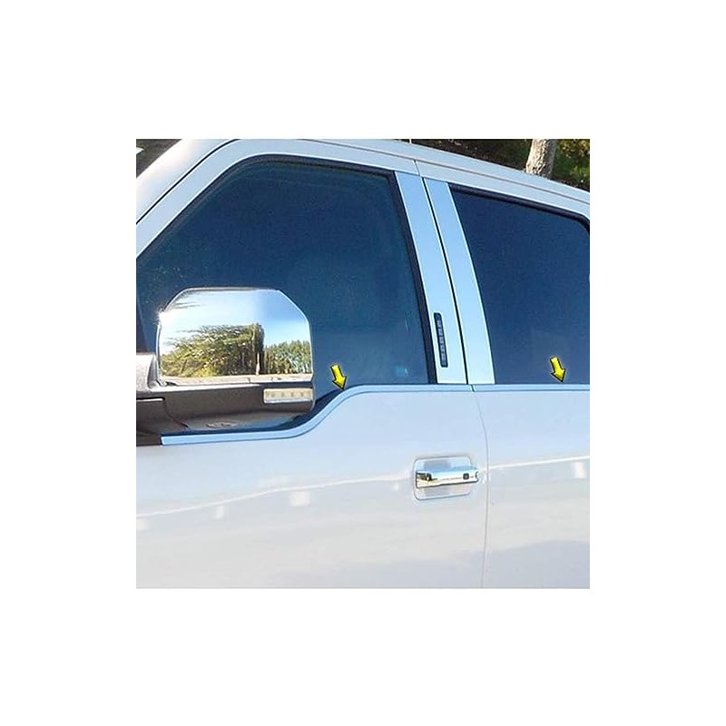 Elite Auto Chrome Polished Window Sill Trim Set fit for Ford F-150 Super Crew Cab 2015-2020 [4pcs]