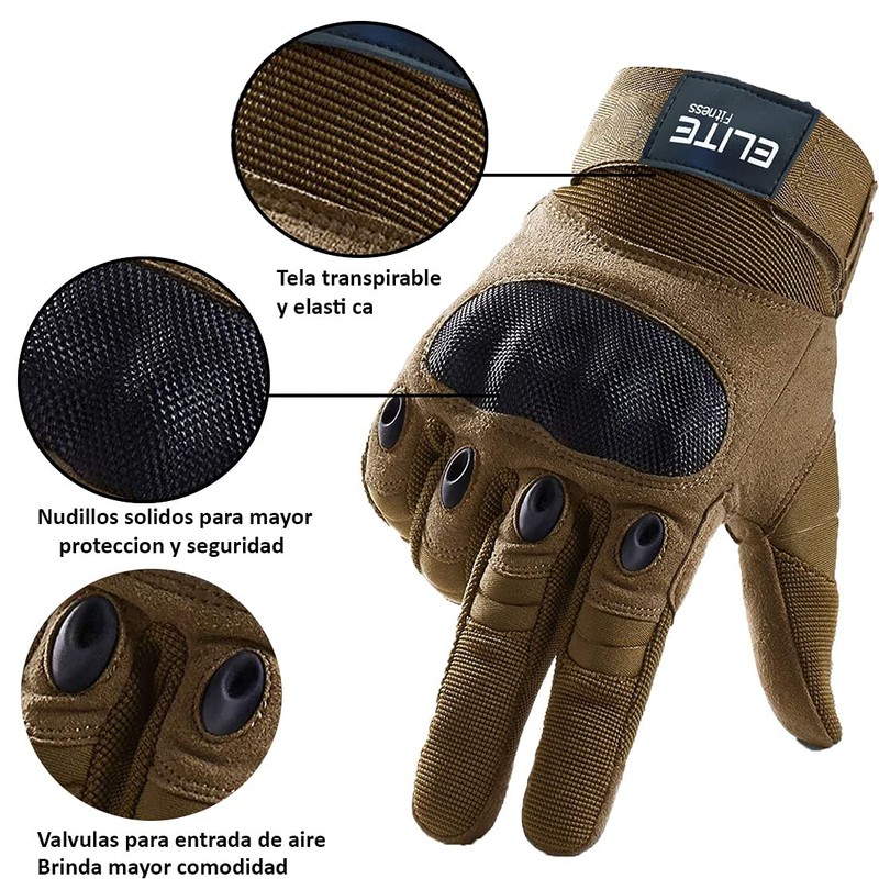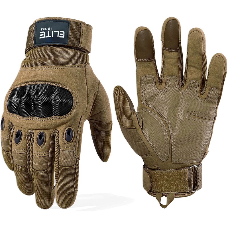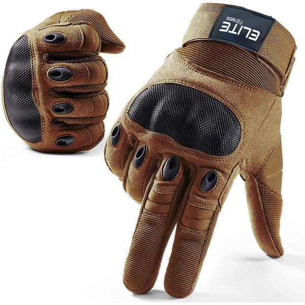 Elite Fitness Guantes Tacticos con Dedos Tactiles, Militares, para Motocicleta, Ciclismo, Invierno, Senderismo y Actividades al Aire Libre, Resistentes para Uso Rudo (Cafe, Chico)