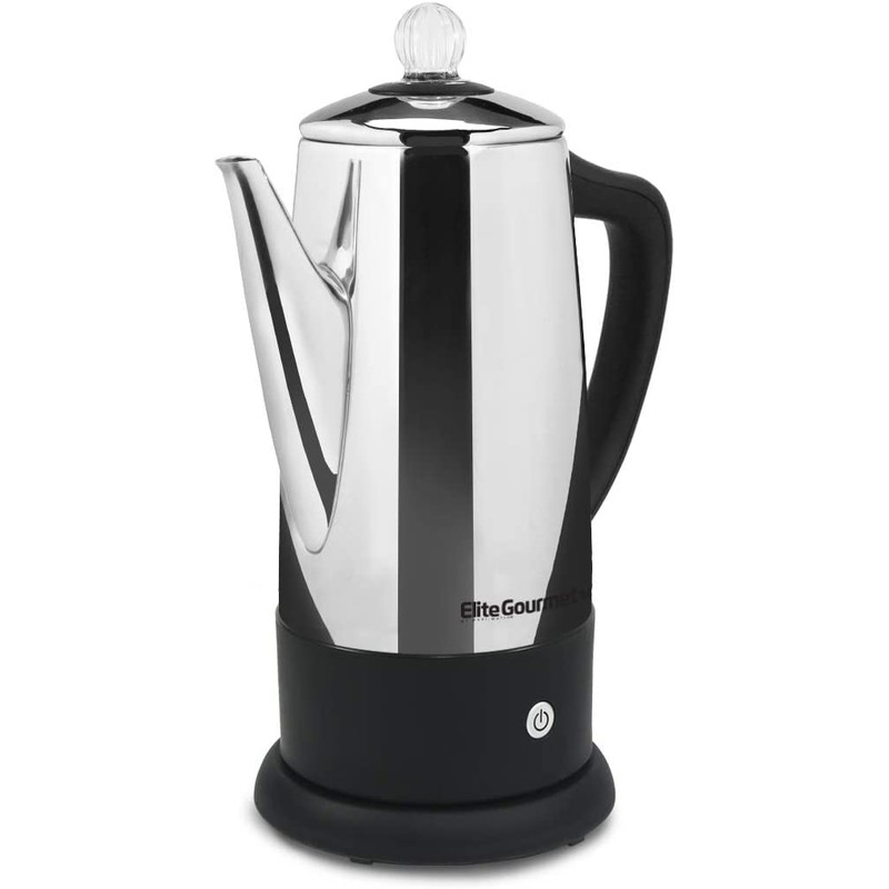 Elite Gourmet EC812 Electric 12-Cup Coffee Percolator with Keep Warm, Clear Brew Progress Knob Cool-Touch Handle Cord-less Serve, Stainless Steel