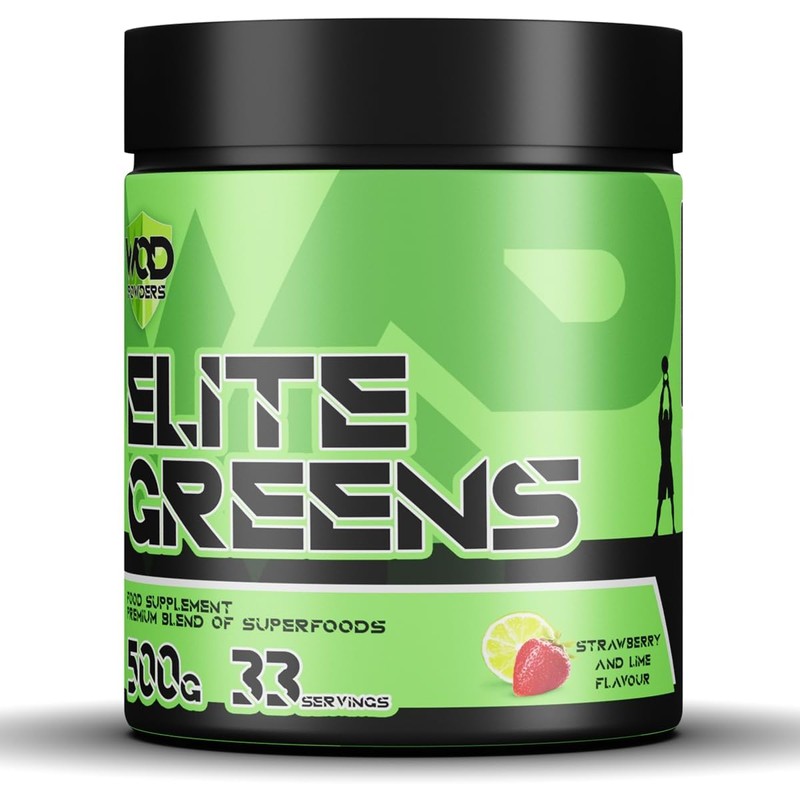 Elite Greens Superfood - WOD Powders | 34 Vegan Superfoods and Natural Ingredients, Green and Red Fruits, Berries,Vegetables, Prebiotics & Digestive Enzymes - 500g (Strawberry & Lime)