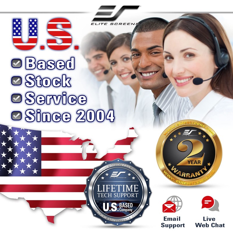 • [US Based Company Warranty] 2-Year Manufacturer Warranty (*if purchased NEW) by Elite Screens' an ISO9001 manufacturer since 2004 and Lifetime Tech Support by Email, Web Chat, or Toll-Free Phone Call by Elite's Professional Service Team. 3-Year ENR-G Manufactures Warranty* for any Educational, Non-profit, Religious or Government and Military purchases.