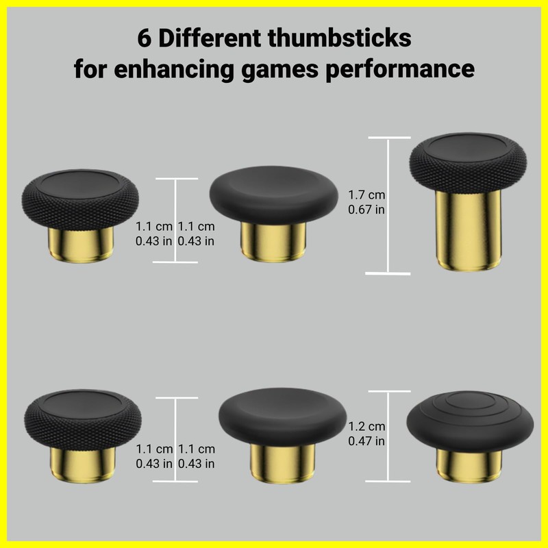 - CUSTOMIZATION: Multiple thumbstick heights and shapes allow players to fine-tune their gaming experience and improve accuracy.