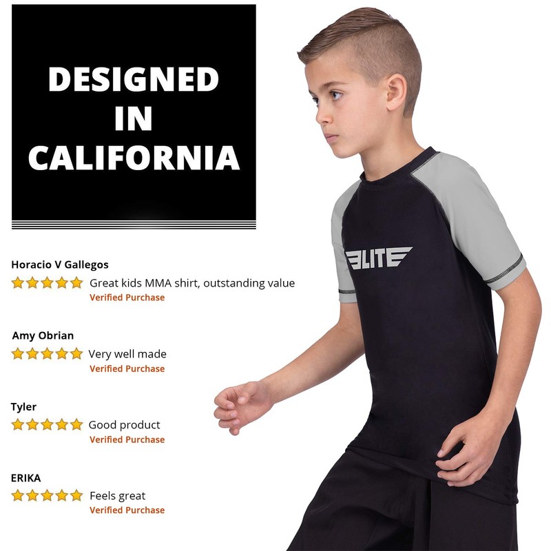 Elite Sports Rash Guards for Boys and Girls, Short Sleeve Compression BJJ Kids and Youth Rash Guard