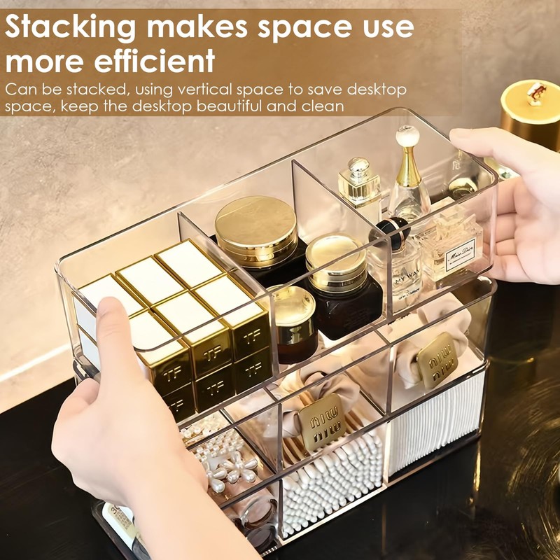 - Safe and practical storage: with a special drawer design, this organiser protects your items from dust while keeping them easily accessible. The three compartments are perfect for neatly storing cotton swabs, makeup tools, earrings or other small accessories.