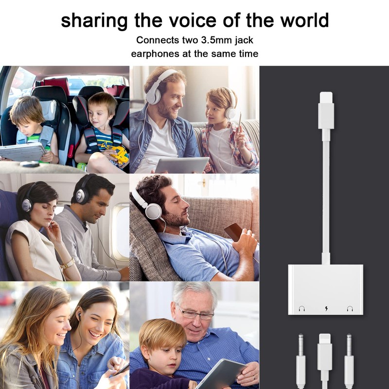 - 【Dual Headset Splitter 】The 3 in 1 iPhone Charge and Listen Adapter supports Dual 3.5mm Headphone Jacks to work at the same time and charge,Support listen music and two person enjoy movie together.This iPad pro headphone adapter designed for iPhone lovers, good friends, families to share happiness and entertainment.