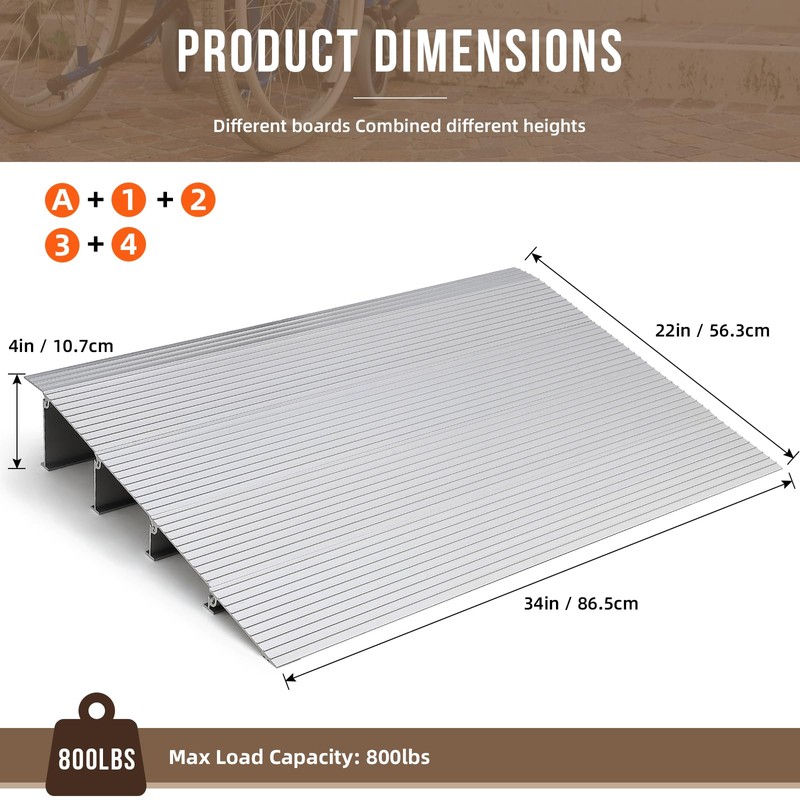 - ALUMINUM & NON-SLIP SURFACE: Constructed from aluminum with a non-slip surface, this doorway ramp for wheelchairs offers superior traction and stability. The rust-proof and scratch-proof design ensures long-lasting performance both indoors and outdoors