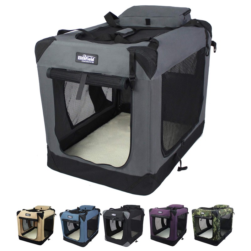 EliteField 3-Door Folding Soft Dog Crate with Carrying Bag and Fleece Bed (2 Year Warranty), Indoor & Outdoor Pet Home (30" L x 21" W x 24" H, Gray)