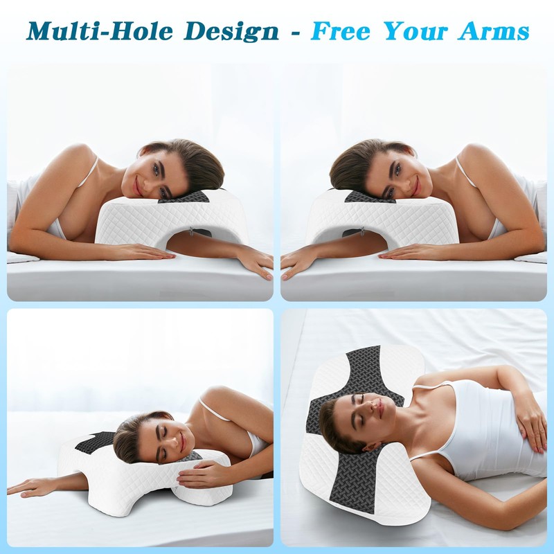 - Innovative Multi-Hole Design: Sleep Your Way! Our unique multi-hole structure allows you to adjust your arm position effortlessly, catering to various sleeping styles. Whether you prefer curling up or stretching out, this side sleeper pillow adapts to your needs, ensuring maximum comfort in any position.