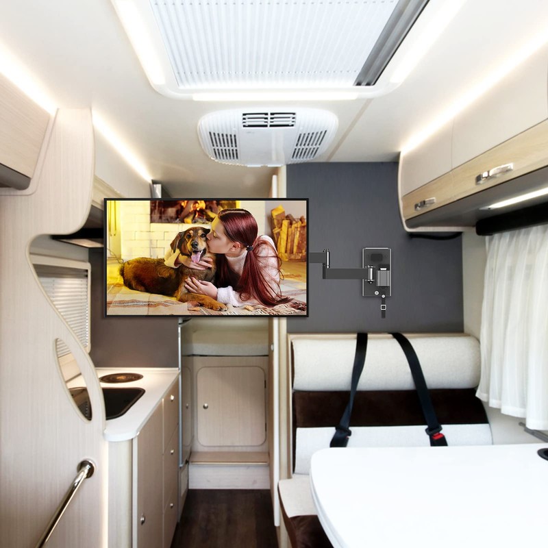 - Optimised Viewing Experience: This full motion TV mount for RV tilts +5/-15 to reduce screen glare, and allows +/-3 level adjustment and +/-90 swivel for better viewing experience. Articulating RV mount extends out to 14.09" from the wall and retract back to 3.15" for space saving