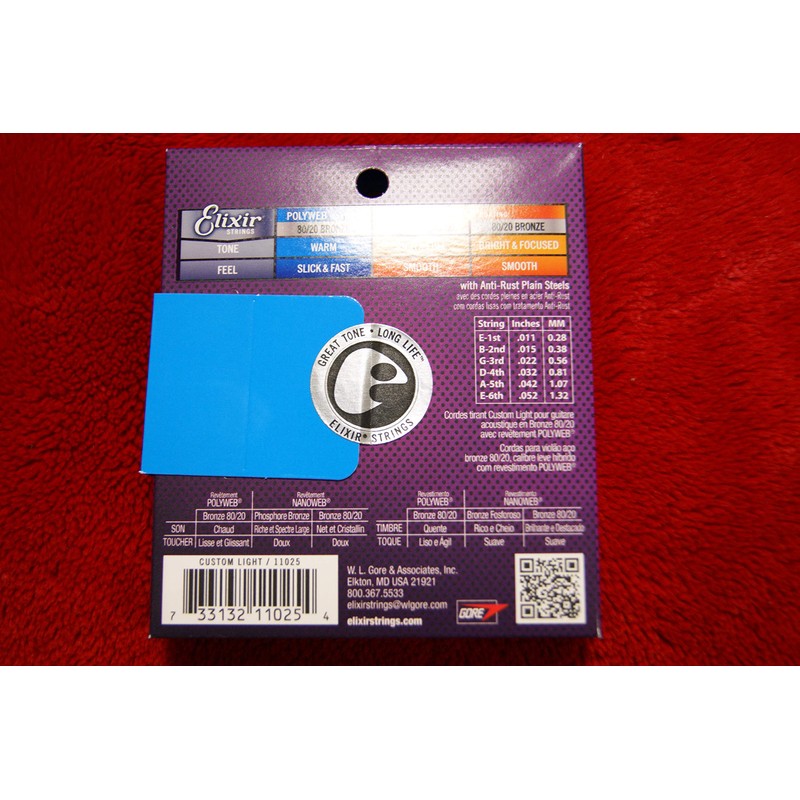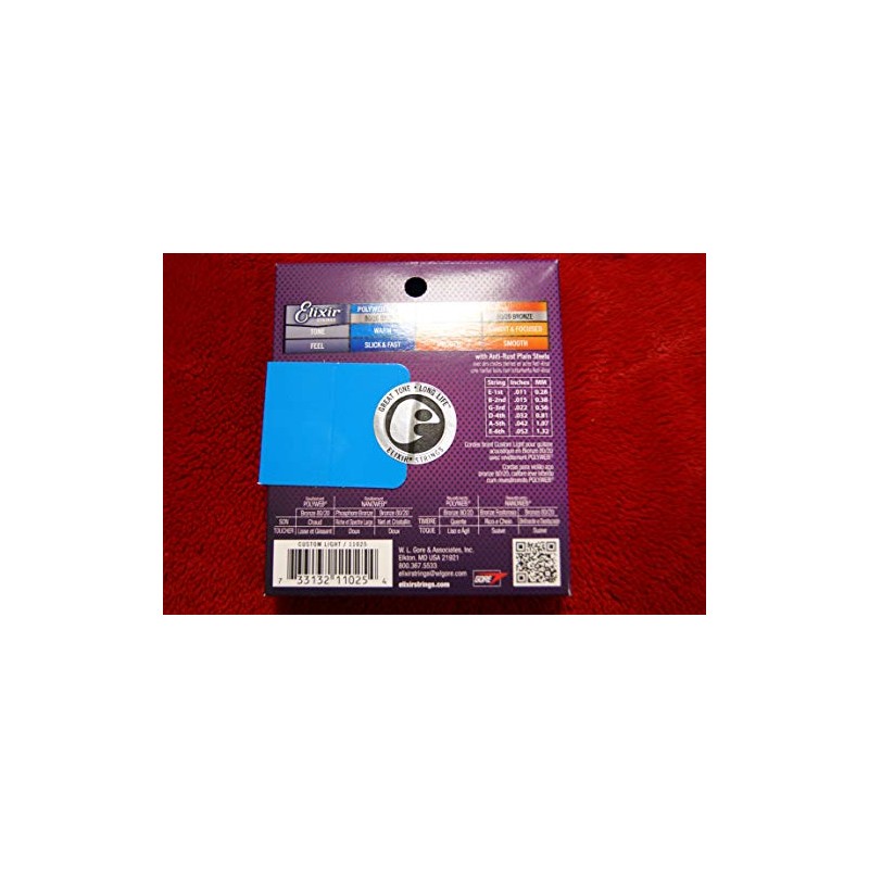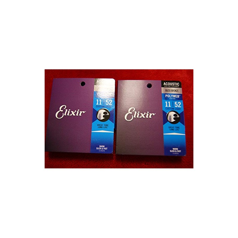 Elixir 11025 Saitensatz für Akustikgitarre (mit Polyweb-Beschichtung, langlebig, Stärke .011-.052 / Custom Light) 2 Packungen