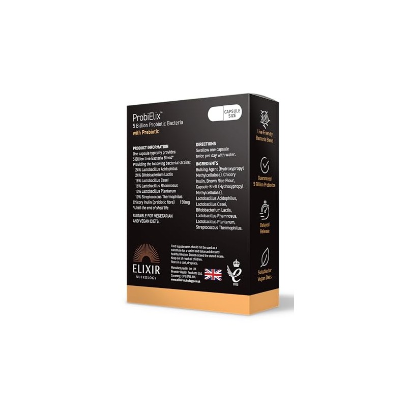 - VEGAN & VEGETARIAN FRIENDLY: ProbiElix is designed to suit a variety of diets, being suitable for both vegetarians and vegans, providing a reliable and holistic probiotic solution for all digestive health needs.