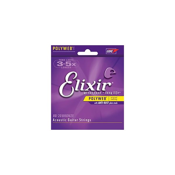 Acoustic guitar strings with polyweb coating for extra long life + anti-rust plain steels