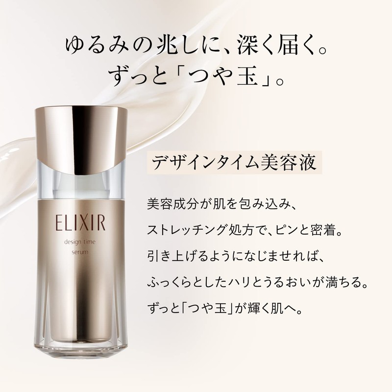 - Elixir Supreme Design Time Serum: Aging care serum that reaches deep into the signs of looseness and leads to shiny skin for a long time. Aqua Floral Scent
