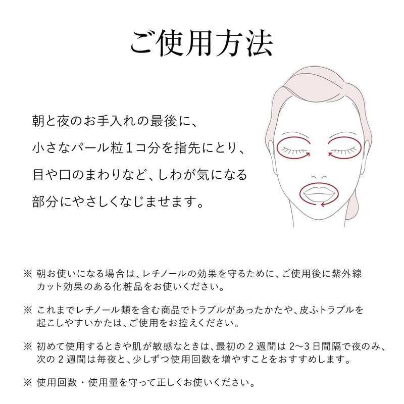 - Retinol, the only ingredient in Japan, pure retinol to improve wrinkles. *Active ingredient retinol
