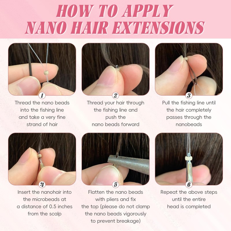 - Easy Wear: Use Nanoring hair extensions for quick and painless installation. Each package comes with several replacement beads, which can be pressed with just one clip without the need for glue. Nano hair extensions human hair can also be reused.