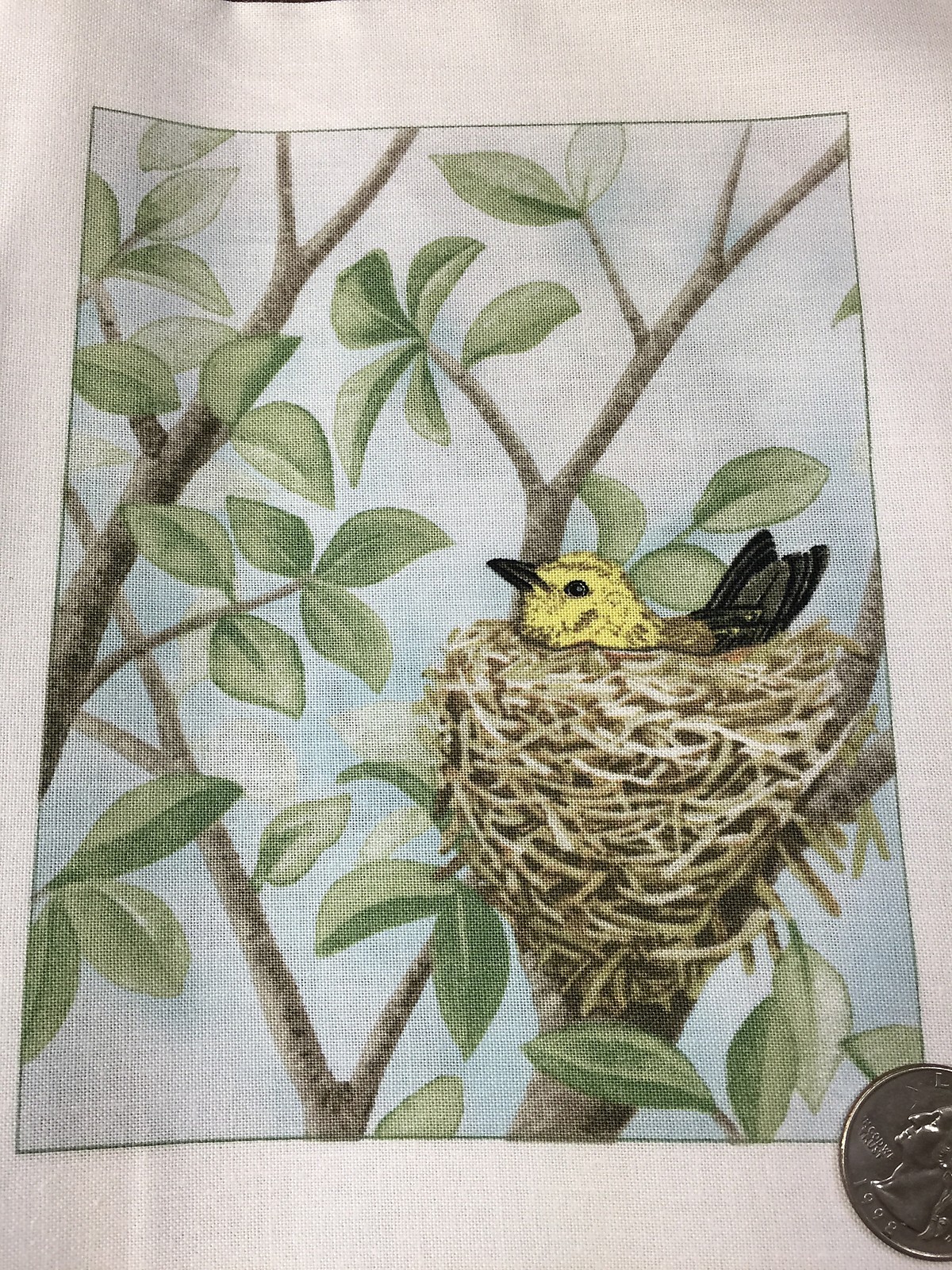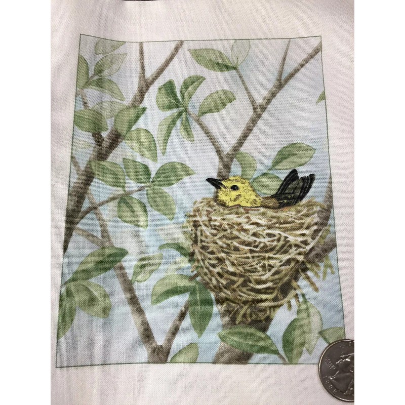 Fabric Bird Quilt Square 4.75" x 6" Cotton Yellow Bird Nest ELIZABETH Qty 1