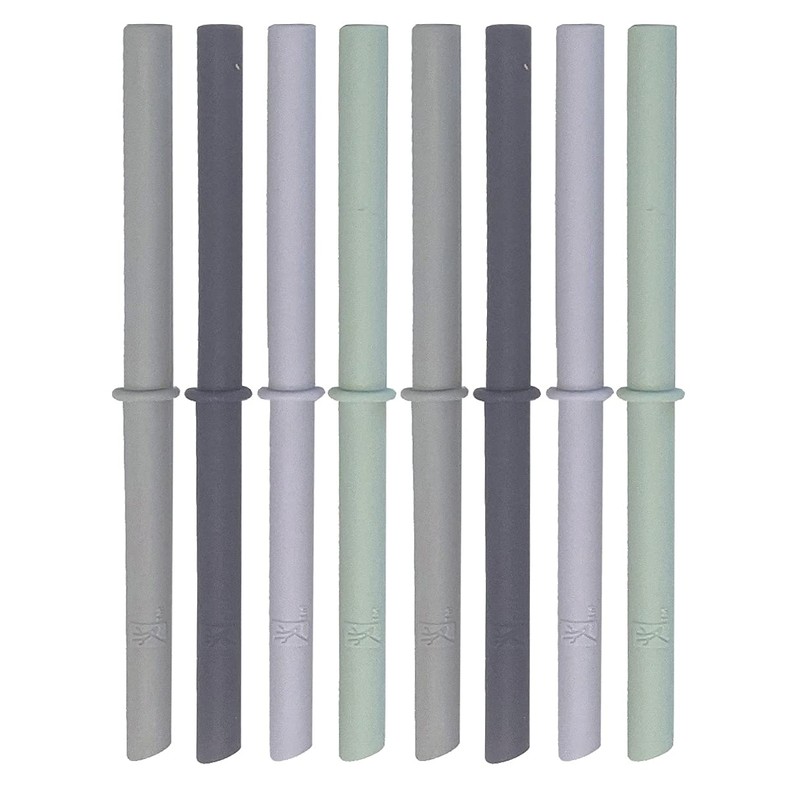 - Paquete: este paquete incluye 8 pajitas de silicona reutilizables con tapón y cepillo de limpieza. Colores: salvia x 2, 2 azul niebla, 2 azul marino y 2 gris
