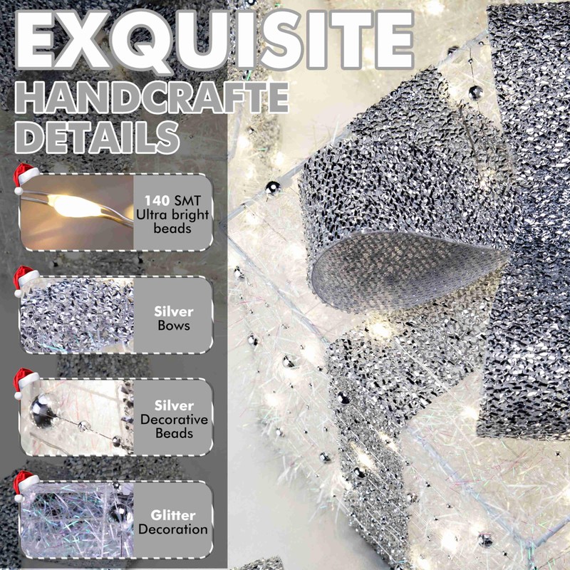 • Beautiful light and shadow presentation: the whole lamps adopt super bright SMT light beads, with a total of 140 LED bulbs installed. Compared to the other LED gift box, the lamp brightness is twice as large as it. In addition, the unique design pattern on exquisite transparent ribbon makes the Christmas decoration produce wonderful light and shadow refraction under the light and breaks around beautiful spots and brings you unique light and shadow effect.