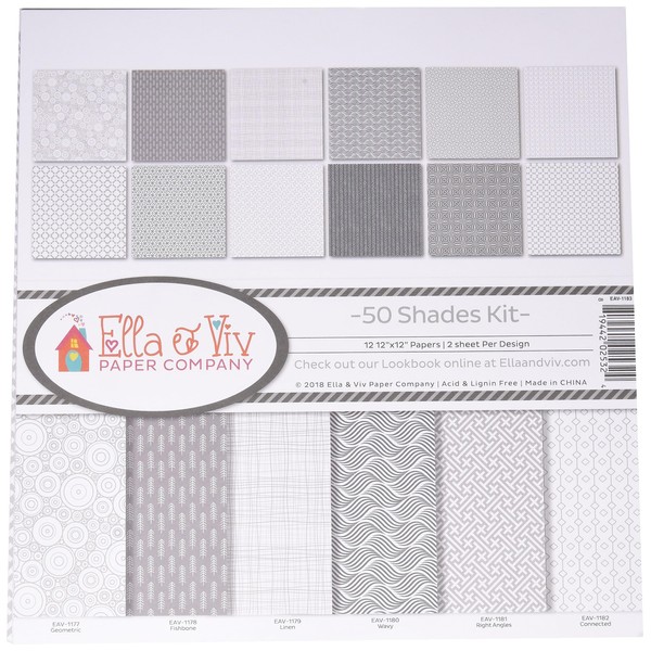 Ella & Viv by Reminisce (ELLLX) 50 Shades Scrapbook Collection Kit, Multi Color Palette, 12x12 inches